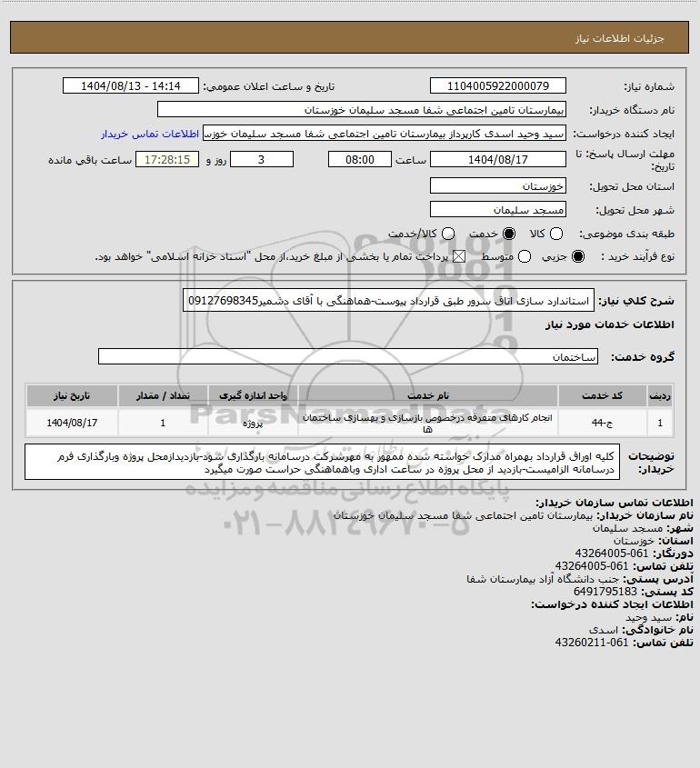 نام دستگاه خریدار:بیمارستان تامین اجتماعی شفا مسجد سلیمان خوزستان
