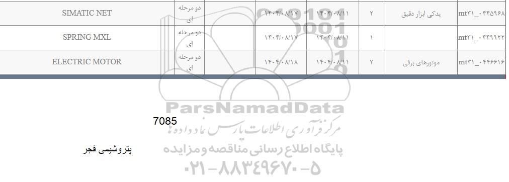 | mt31 - 0445968 | یدکی ابزار دقیق | 2 | 1404.8.17 | دو مرحله ای | SIMATIC NET |
