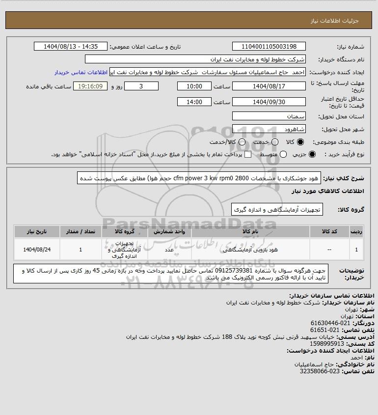 شرح کلی نیاز: هود جوشکاری با مشخصات 2800 cfm power 3 kw rpm0 حجم هوا) مطابق عکس پیوست شده