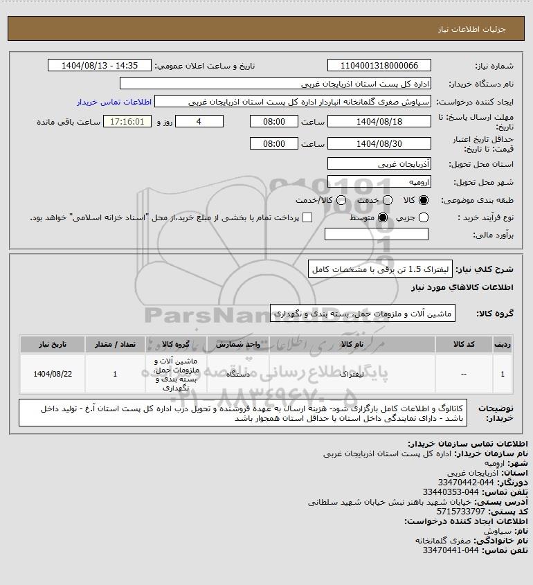 نام دستگاه خریدار:اداره کل پست استان اذربایجان غربی
