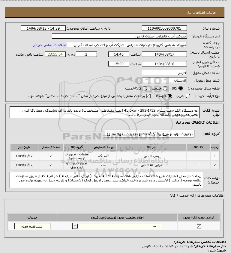 نام سازمان خریدار: شرکت آب و فاضلاب استان فارس