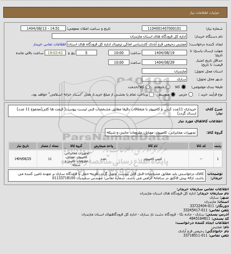 1 -- کیس کامپیوتر عدد تجهیزات مخابراتی، کامپیوتر، موبایل، ملزومات جانبی و شبکه 11 1404/08/25