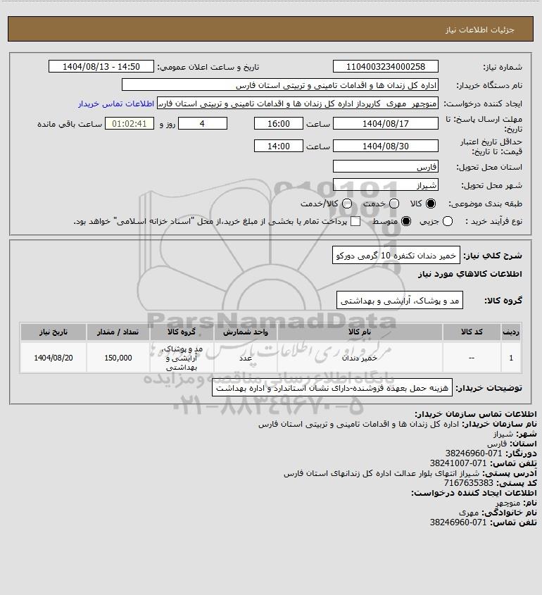 1 -- خمیر دندان عدد مد و پوشاک، آرایشی و بهداشتی 150,000 1404/08/20