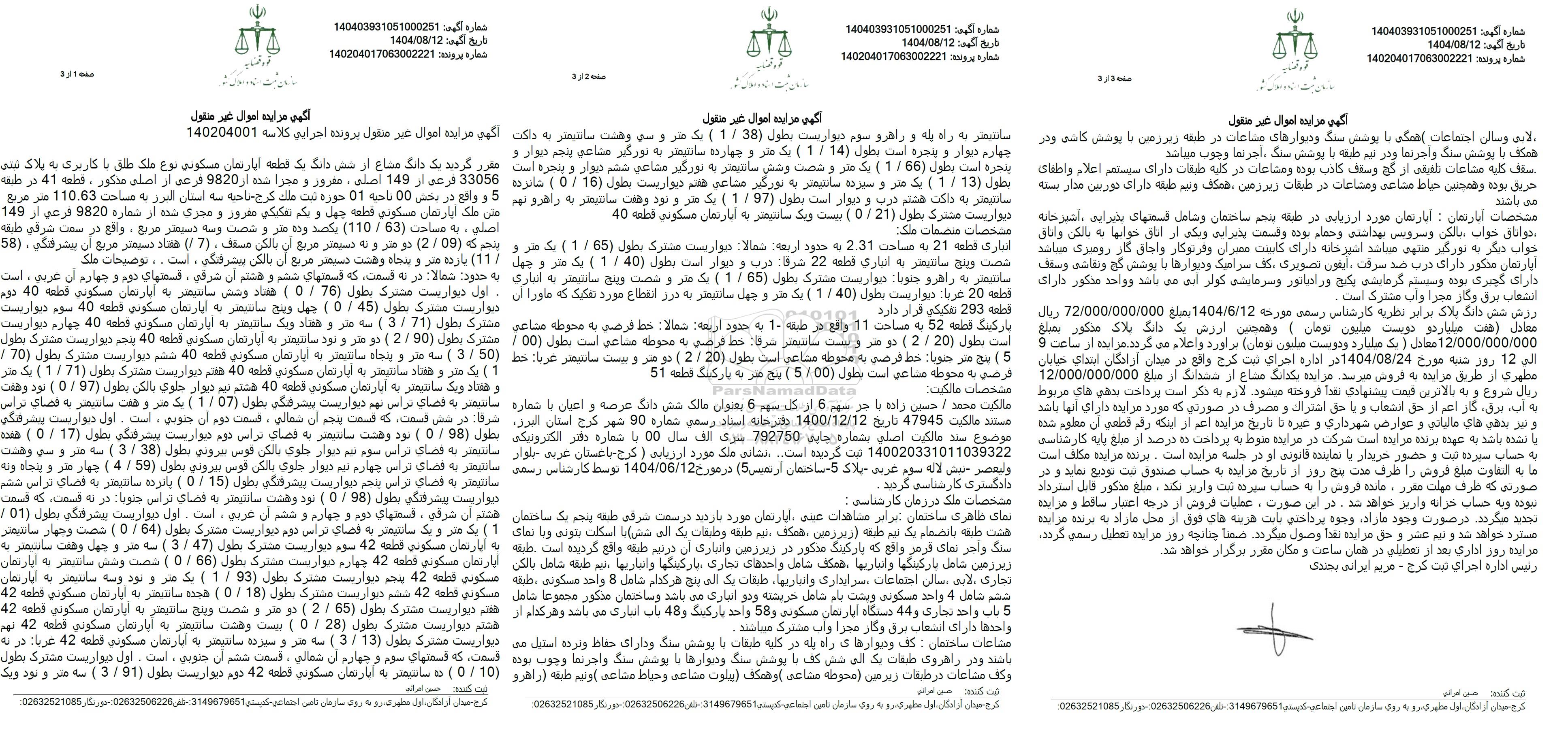 آگهی مزایده اموال غیر منقول پرونده اجرایی کلاسه 140204001