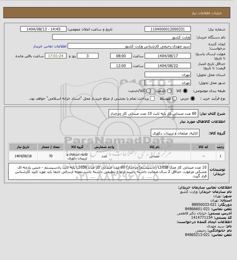 شرح کلی نیاز: 60 عدد صندلی کار پایه ثابت 10 عدد صندلی کار چرخدار