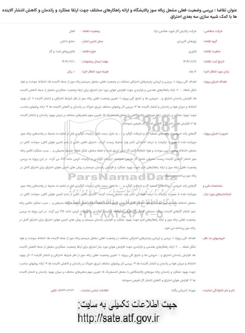 عنوان تقاضا : بررسی وضعیت فعلی مشعل زباله سوز پالایشگاه و ارائه راهکارهای مختلف جهت ارتقا عملکرد و راندمان و کاهش انتشار آلاینده ها با کمک شبیه سازی سه بعدی احتراق