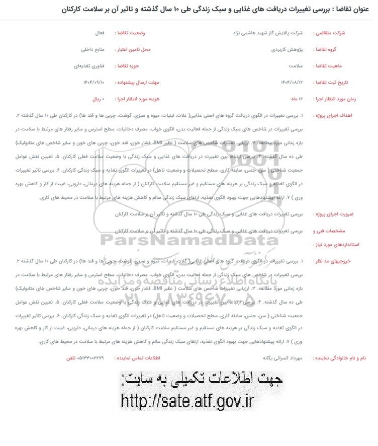 شرکت متقاضی : شرکت پالایش گاز شهید هاشمی نژاد