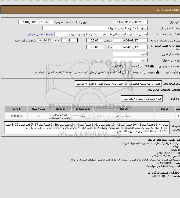 نام دستگاه خریدار:بیمارستان شهیددکترمعیری تهران