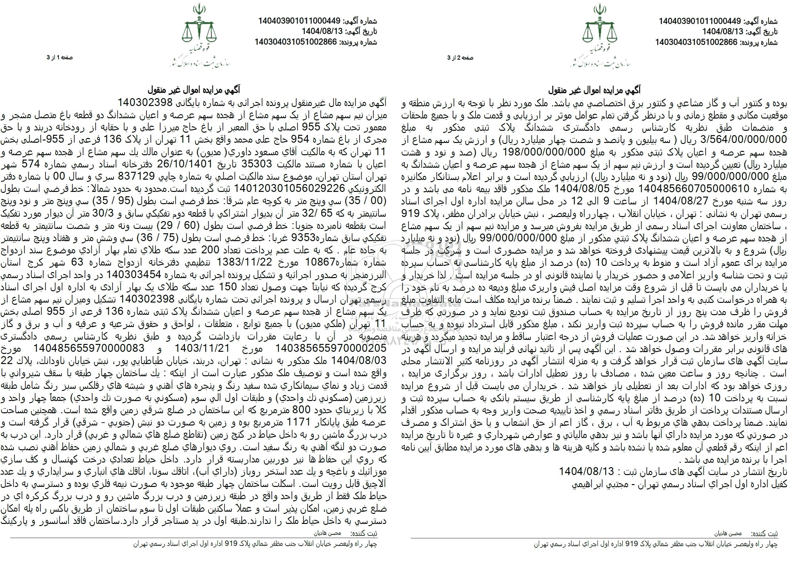 شماره اگهی : 140403901011000449
