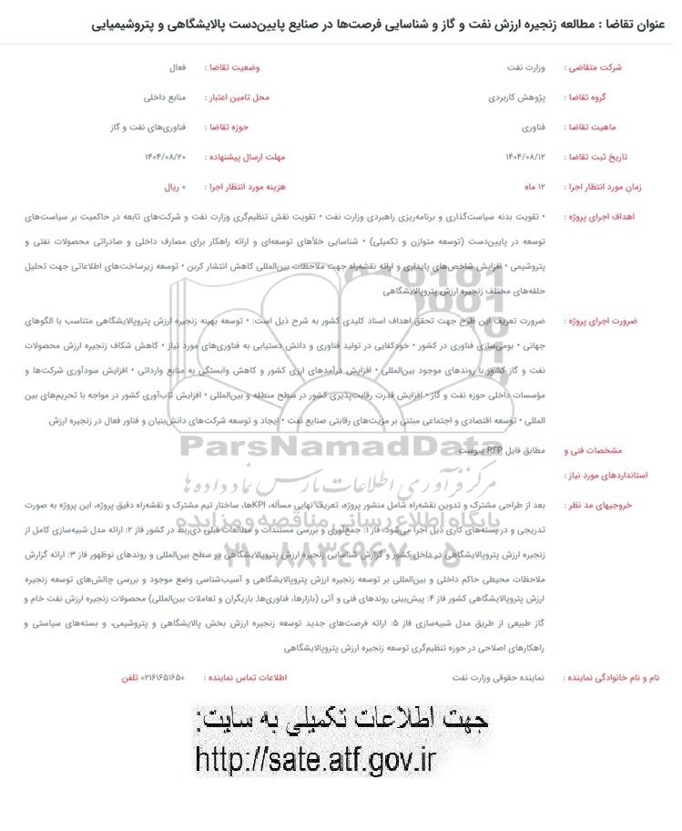 عنوان تقاضا : مطالعه زنجیره ارزش نفت و گاز و شناسایی فرصتها در صنایع پایین دست پالایشگاهی و پتروشیمیایی