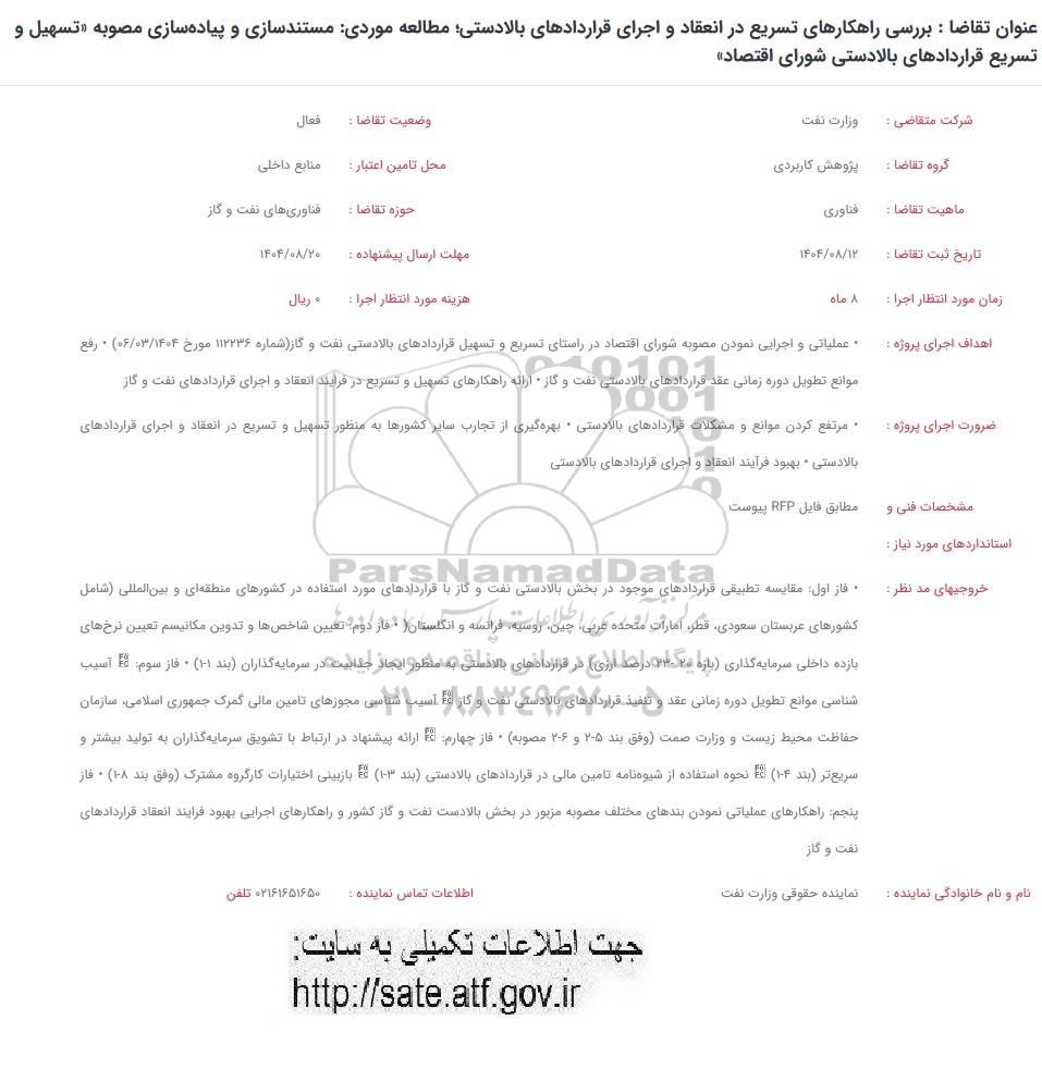 عنوان تقاضا : بررسی راهکارهای تسریع در انعقاد و اجرای قراردادهای بالادستی مطالعه موردی مستندسازی و پیاده سازی مصوبه تسهیل و تسریع قراردادهای بالادستی شورای اقتصاد
