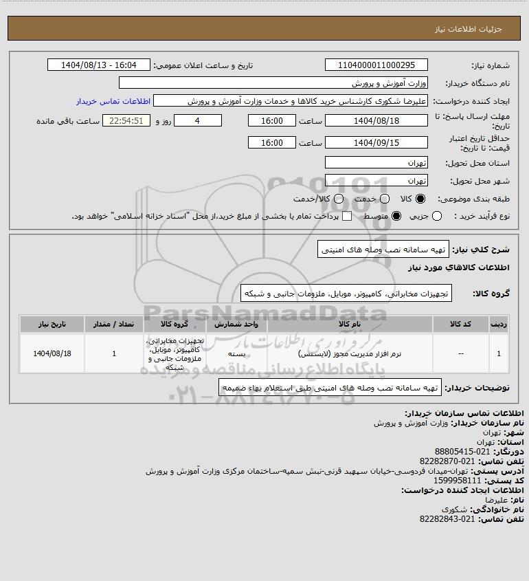 نام دستگاه خریدار:وزارت آموزش و پرورش