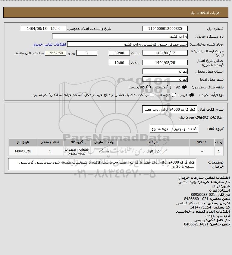 شرح کلی نیاز: کولر گازی 24000 ایرانی برند معتبر