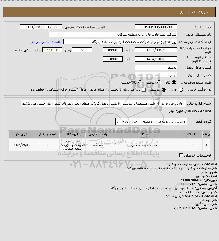 نام دستگاه خریدار:شرکت نفت فلات قاره ایران منطقه بهرگان