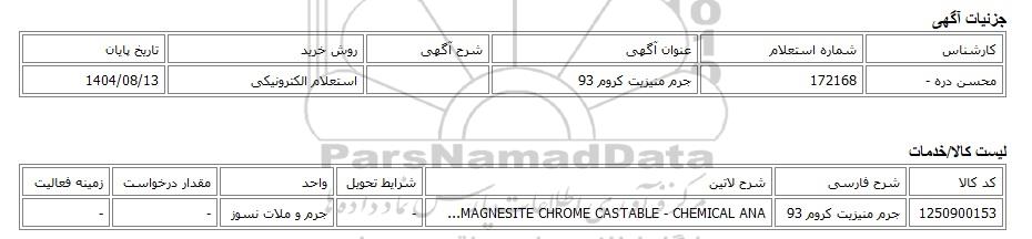 محسن دره - 172168جرم منیزیت کروم 93استعلام الکترونیکی1404/08/13