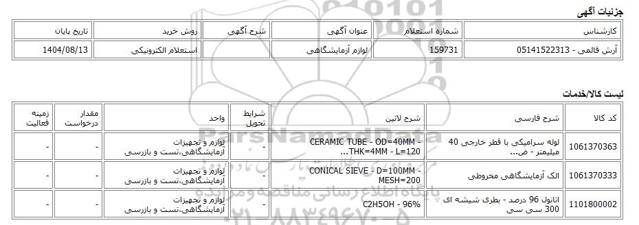 آرش قائمی - 05141522313159731لوازم آزمایشگاهیاستعلام الکترونیکی1404/08/13