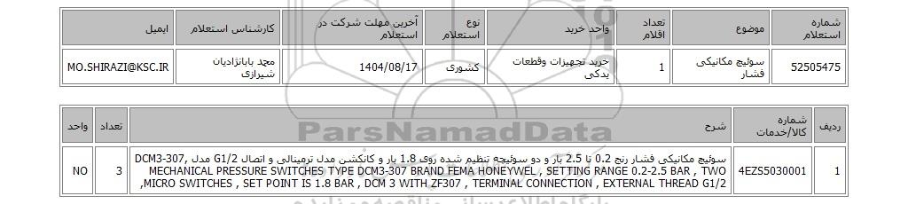 52505475سوئیچ مکانیکی فشار 1خرید تجهیزات وقطعات یدکیکشوری1404/08/17محمد بابانژادیان شیرازیMO.SHIRAZI@KSC.IR