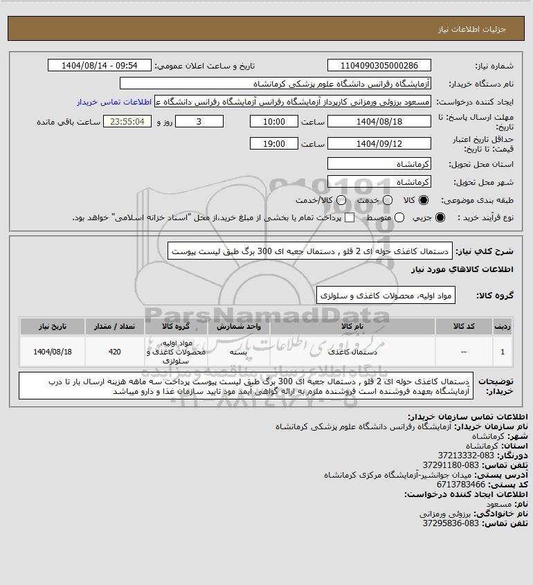 نام دستگاه خریدار:آزمایشگاه رفرانس دانشگاه علوم پزشکی کرمانشاه