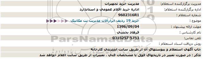 موضوع : خرید 19 ردیف ابرارآلات مدیریت نت مکانیک