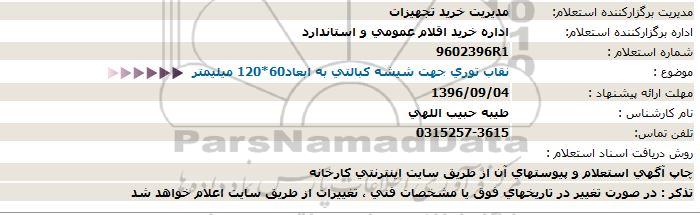 اداره برگزارکننده استعلام: اداره خرید اقلام عمومی و استانداد