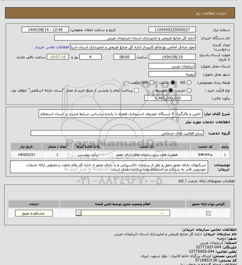 نام دستگاه خریدار:اداره کل منابع طبیعی و ابخیزداری استان اذربایجان غربی