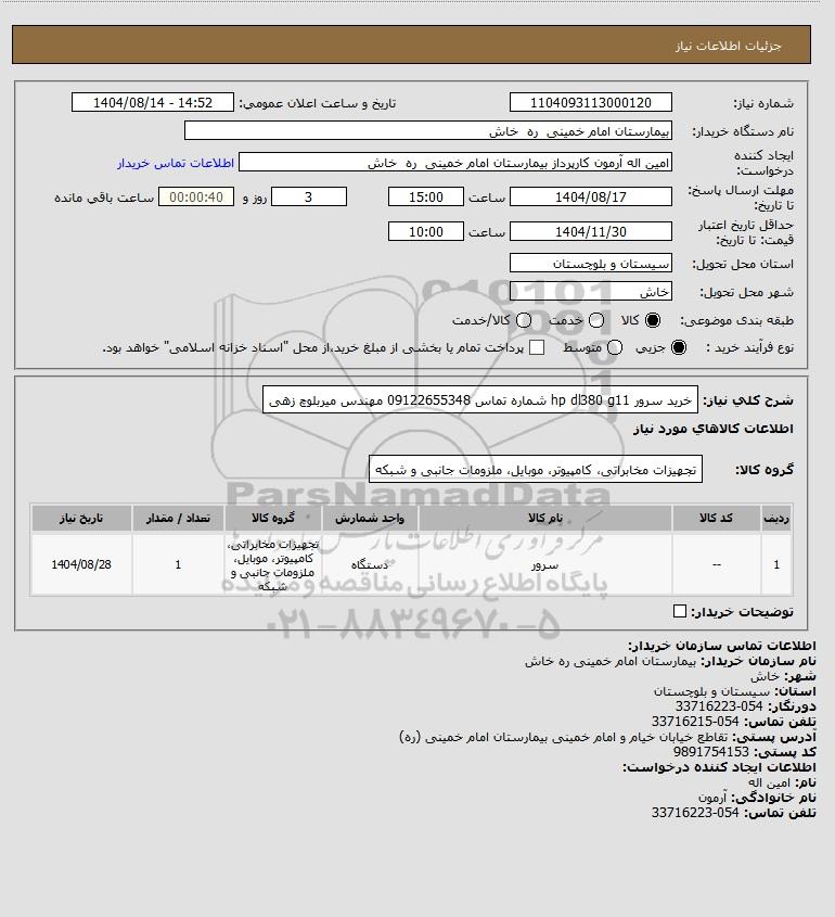 | 1 | -- | سرور | دستگاه | تجهیزات مخابراتی، کامپیوتر، موبایل، ملزومات جانبی و شبکه | 1 | 1404/08/28 |