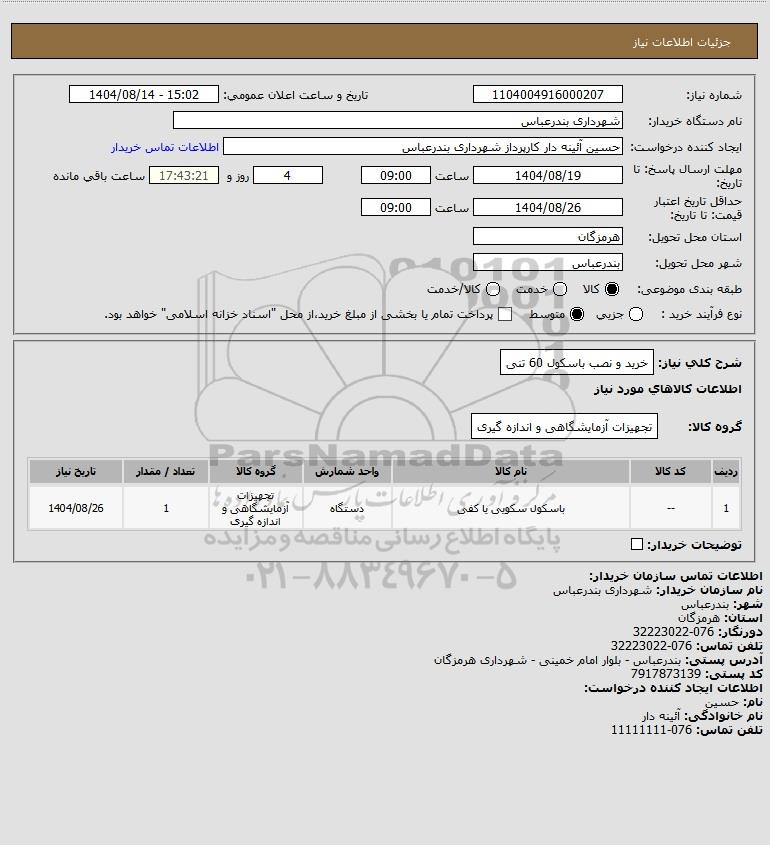 شرح کلی نیاز: خرید و نصب باسکول 60 تنی