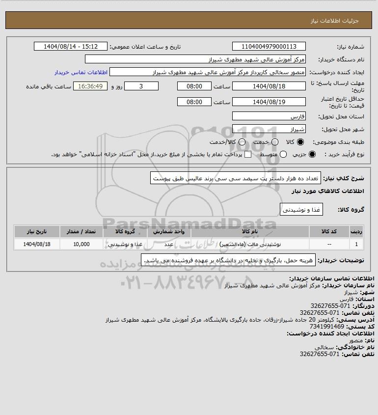 نام دستگاه خریدار:مرکز آموزش عالی شهید مطهری شیراز