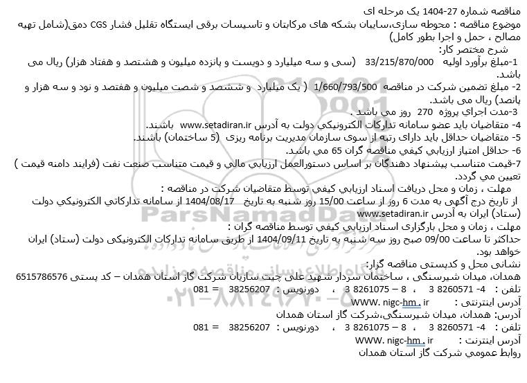 موضوع مناقصه : محوطه سازی سایبان بشکه های مرکابتان و تاسیسات برقی ایستگاه تقلیل فشار CGS دمق (شامل تهیه مصالح ، حمل و اجرا بطور کامل )