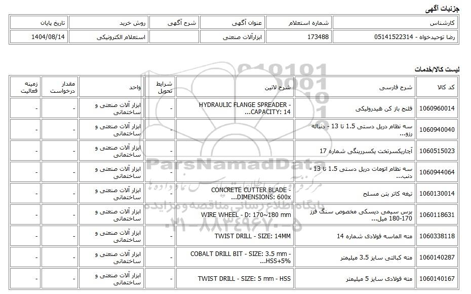 رضا توحیدخواه - 05141522314173488ابزارآلات صنعتیاستعلام الکترونیکی1404/08/14