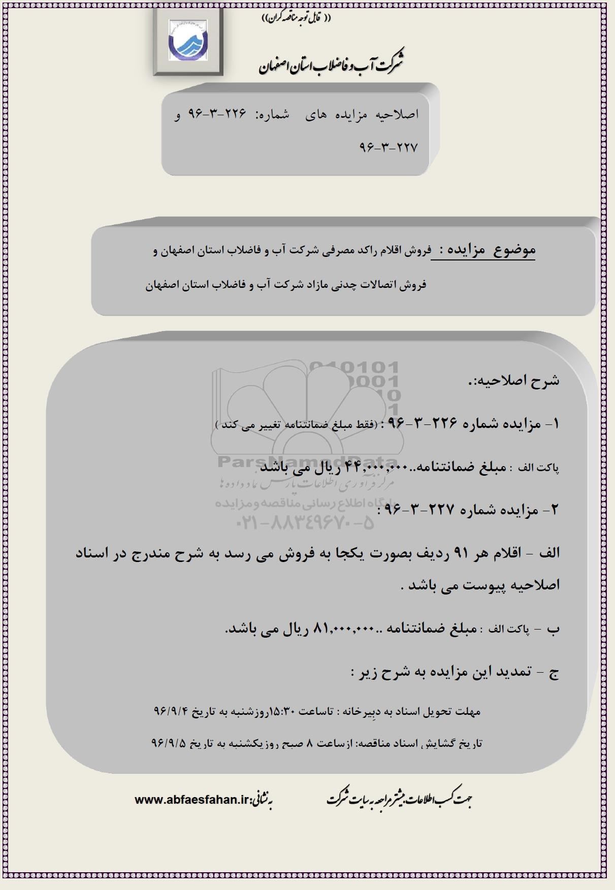 مزایده شماره 96-3-226 فقط مبلغ ضمانت نامه تغییر می کند