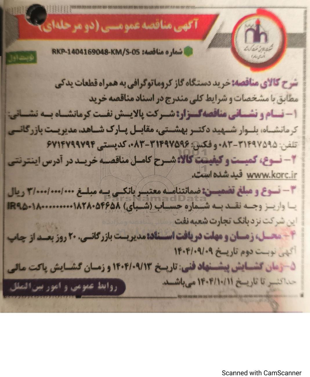 شماره مناقصه: RKP- 1404169048 - KM/S- 05 - نوبت اول