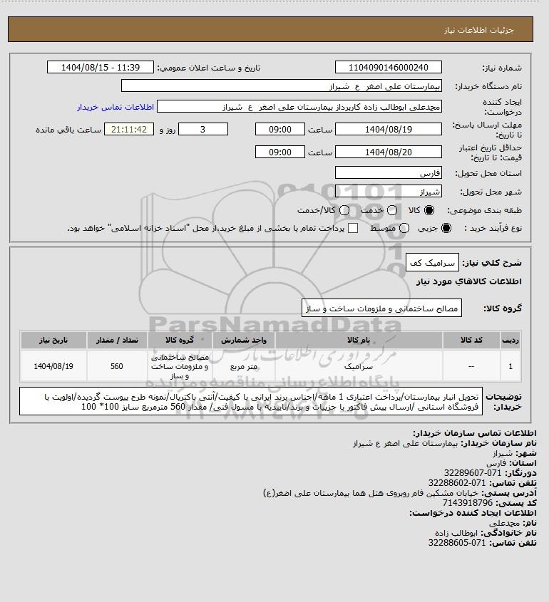 نام سازمان خریدار: بیمارستان علی اصغر ع شیراز