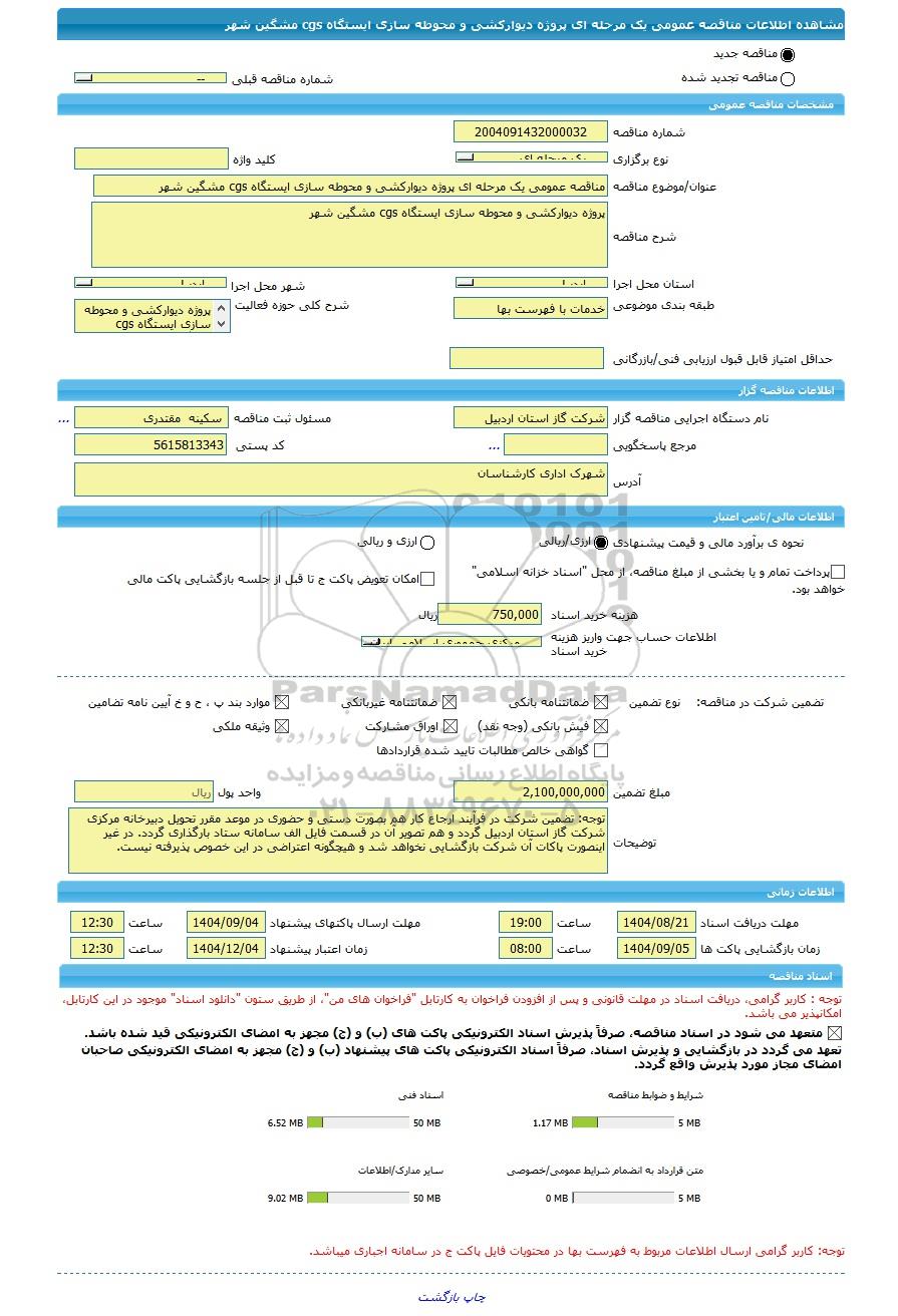 | شرح مناقصه | پروژه دیوارکشی و محوطه سازی ایستگاه cgs مشگین شهر | ||