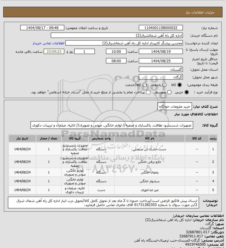 نام دستگاه خریدار:اداره کل راه آهن شمالشرق(2)