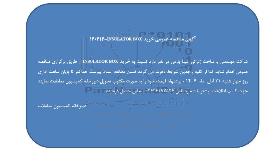 آگهی مناقصه عمومی خرید INSULATOR BOX