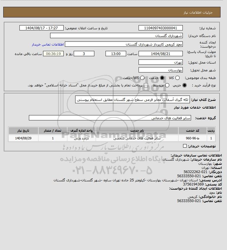 شرح کلی نیاز: لکه گیری آسفالت معابر فرعی سطح شهر گلستان مطابق استعلام پیوستی