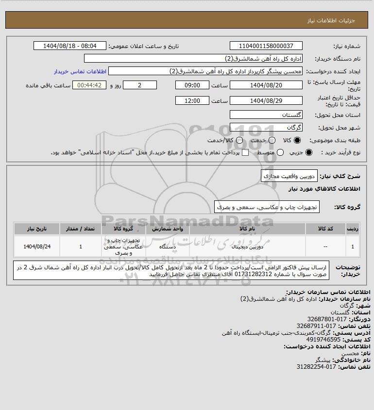 استعلام بها و موضوع استعلام استعلام دوربین واقعیت مجازی به اطلاع کلیه شرکتها و افراد متخصص واجد شرایط میرساند، آگهی گذار در نظر دارد از طریق استعلام بها، نسبت به انتخاب و دریافت پیشنهادات اقدام نماید. این استعلام با کد آگهی ثبت شده در سامانه خبرگزاری پارس نماد : 9818513 منتشر شده است. مشخصات استعلام : تاریخ شروع استعلام: 1404/08/18 آخرین مهلت ارسال پیشنهاد قیمت : 1404/08/20 و محل اجرای پروژه : استان مناقصات استان گلستان میباشد. استعلام قیمت مورد درخواست : استعلام دوربین واقعیت مجازی با دستهبندیهای تخصصی و گروه های مرتبط : تجهیزات و لوازم عکاسی و رادیوگرافی, استعلام اطلاع رسانی میگردد.