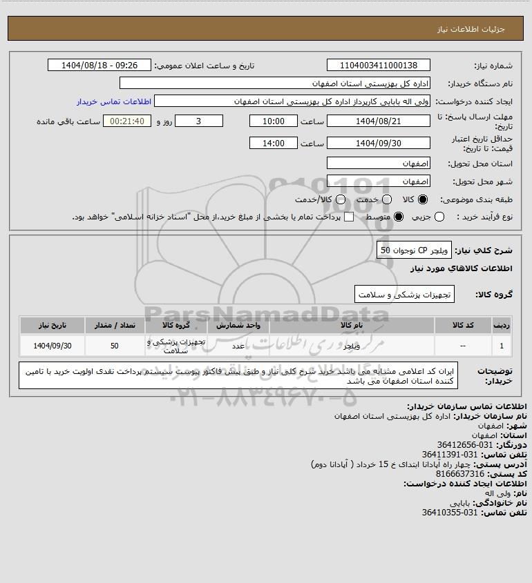 | 1 | -- | ویلچر | عدد | تجهیزات پزشکی و سلامت | 50 | 1404/09/30 |