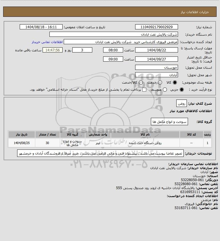 نام سازمان خریدار: شرکت پالایش نفت ابادان