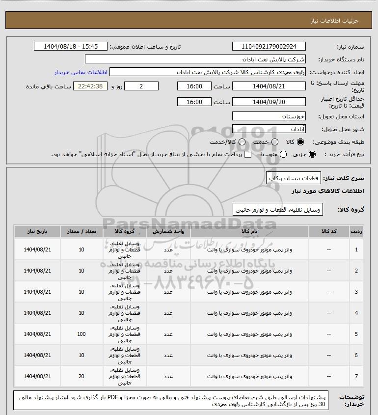 شرح کلی نیاز: قطعات نیسان پیکاپ