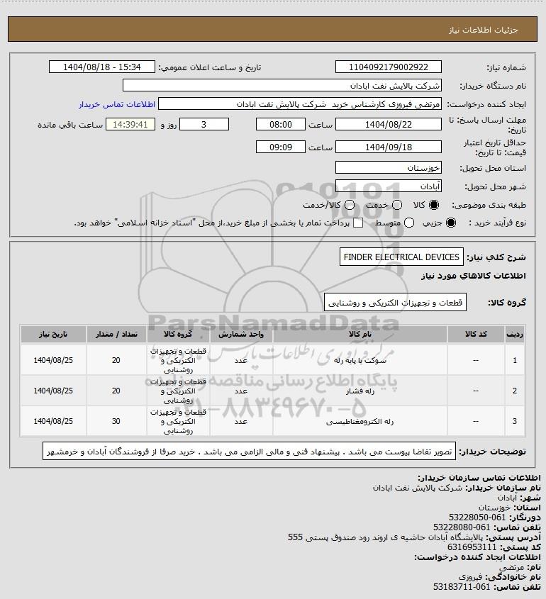 استعلام FINDER ELECTRICAL DEVICES, استعلام FINDER ELECTRICAL DEVICES