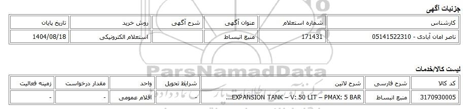 ناصر امان آبادی - 05141522310171431منبع انبساطاستعلام الکترونیکی1404/08/18