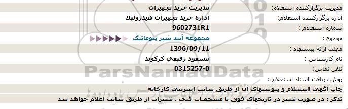 اداره برگزارکننده استعلام: اداره خرید تجهیزات هیدرولیک