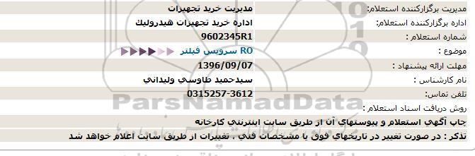 اداره برگزارکننده استعلام: اداره خرید تجهیزات هیدرولیک