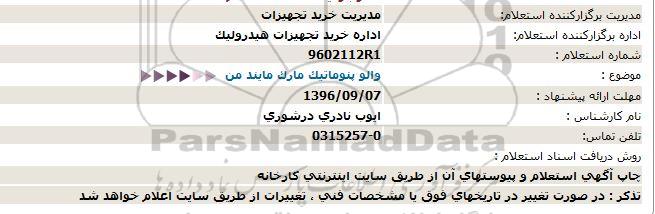 اداره برگزارکننده استعلام: اداره خرید تجهیزات هیدرولیک