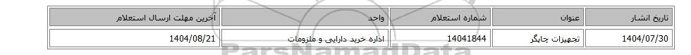 1404/07/30تجهیزات چاپگر14041844اداره خرید دارایی و ملزومات1404/08/21