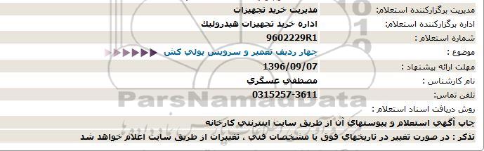 استعلام تعمیر و سرویس پولی کش , استعلام, استعلام تعمیر و سرویس پولی کش