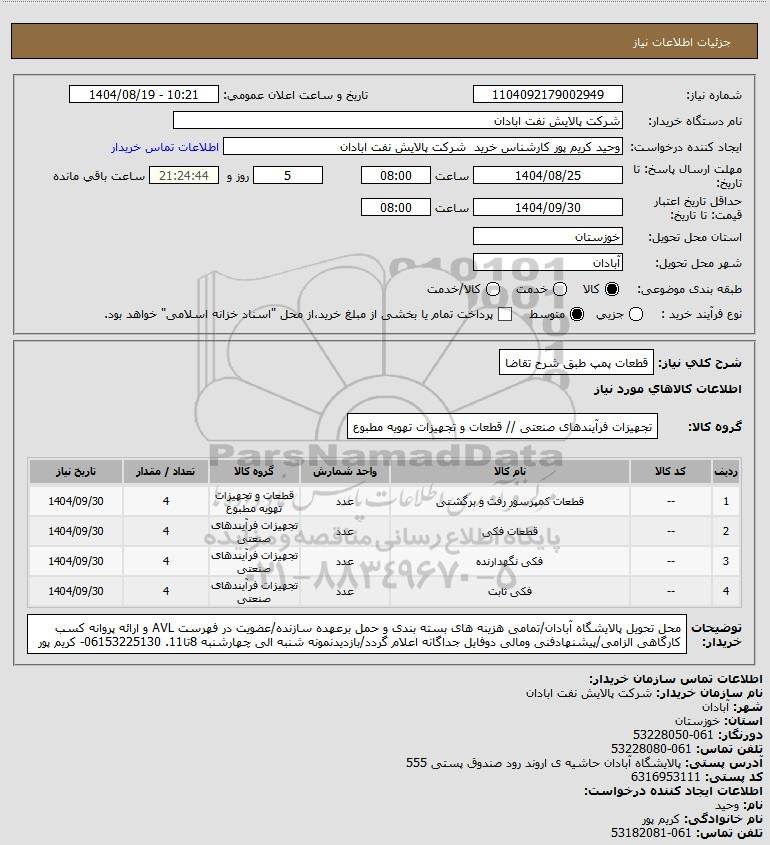 نام سازمان خریدار: شرکت پالایش نفت ابادان