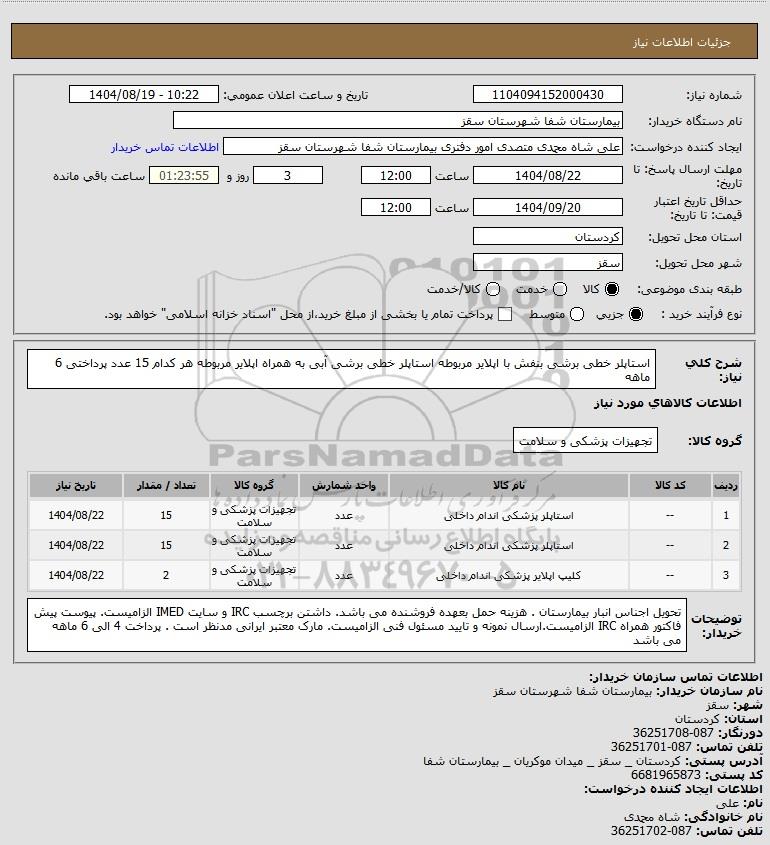 نام دستگاه خریدار:بیمارستان شفا شهرستان سقز